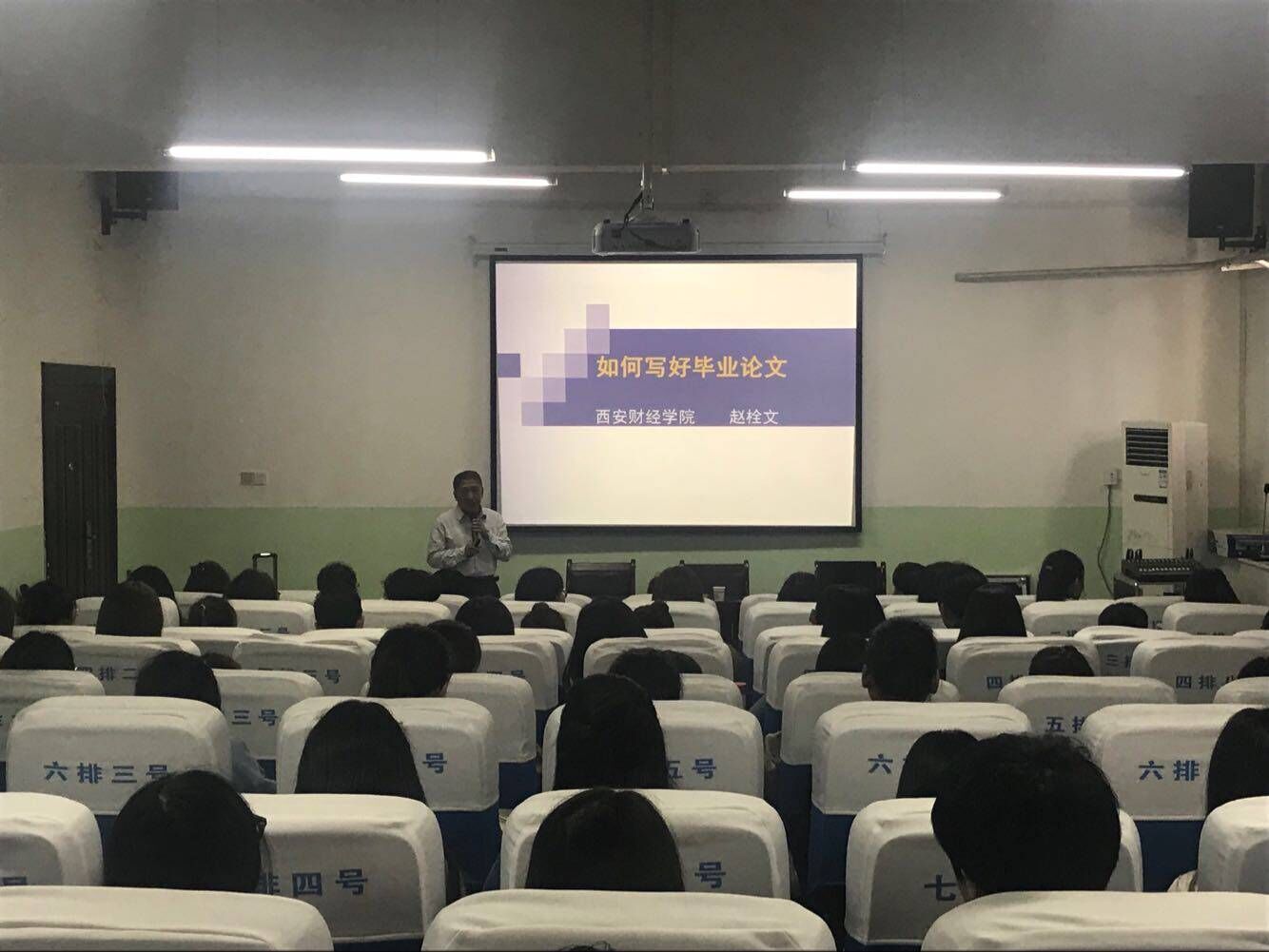 4月27日下午,西安财经大学赵栓文教授受best365英国体育在线邀请,为我院财务管理专业师生百余人在教学北楼447报告厅做了以“如何写好毕业论文”为题的报告会。